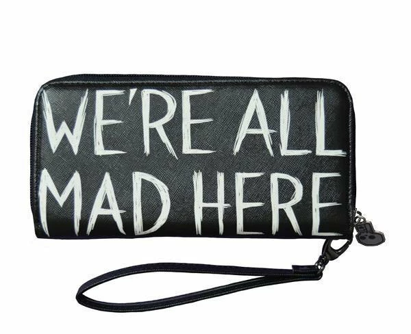 The Akumu Ink customized wallet features the We’re All Mad Here design, depicting the ever sinister Cheshire Cat – Oh what is he up to now…