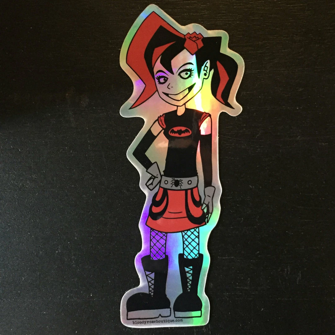 The official Bloody Rose Boutique mascot, Rose on a holographic sticker.