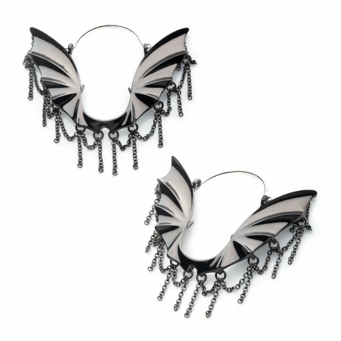 20g Steel with Black Plated Bat & Chains Plug Hoops.