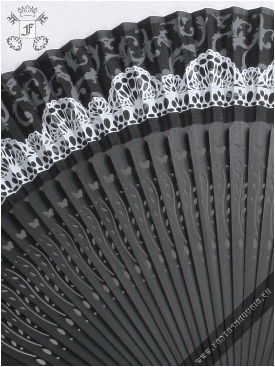 Gothic Lolita folding fan. Beautiful black and white folding fan with lace-y accents.