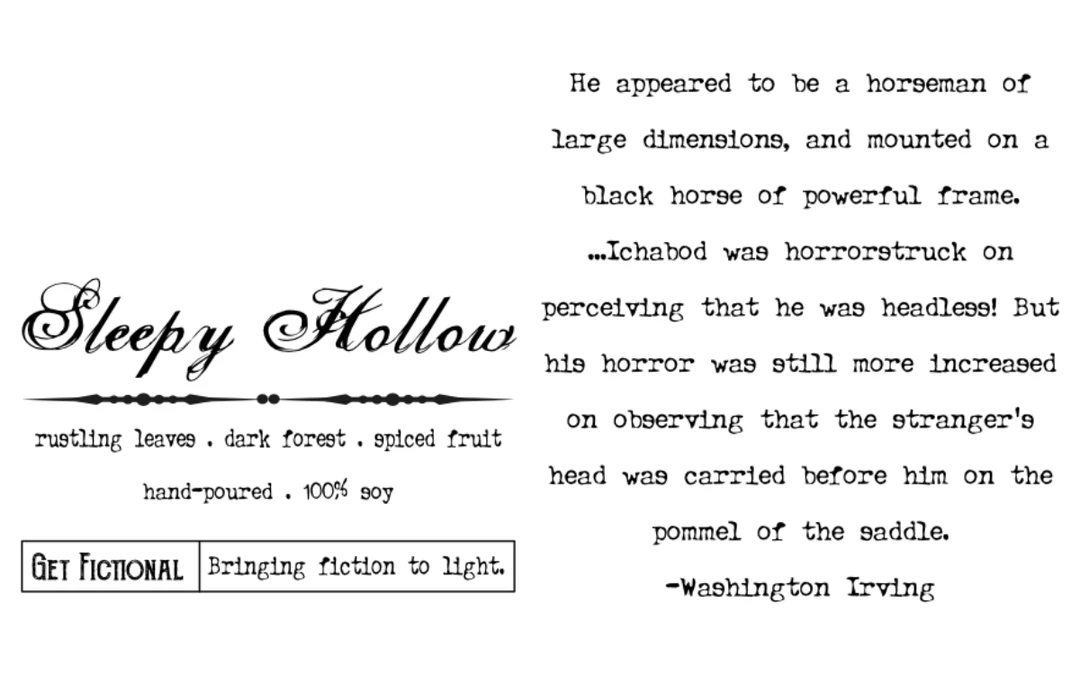 The Sleepy Hollow candle is a blend of spiced fruit, apple, autumn leaves, cedarwood, and tonka.