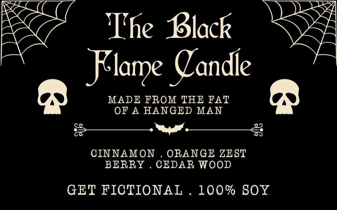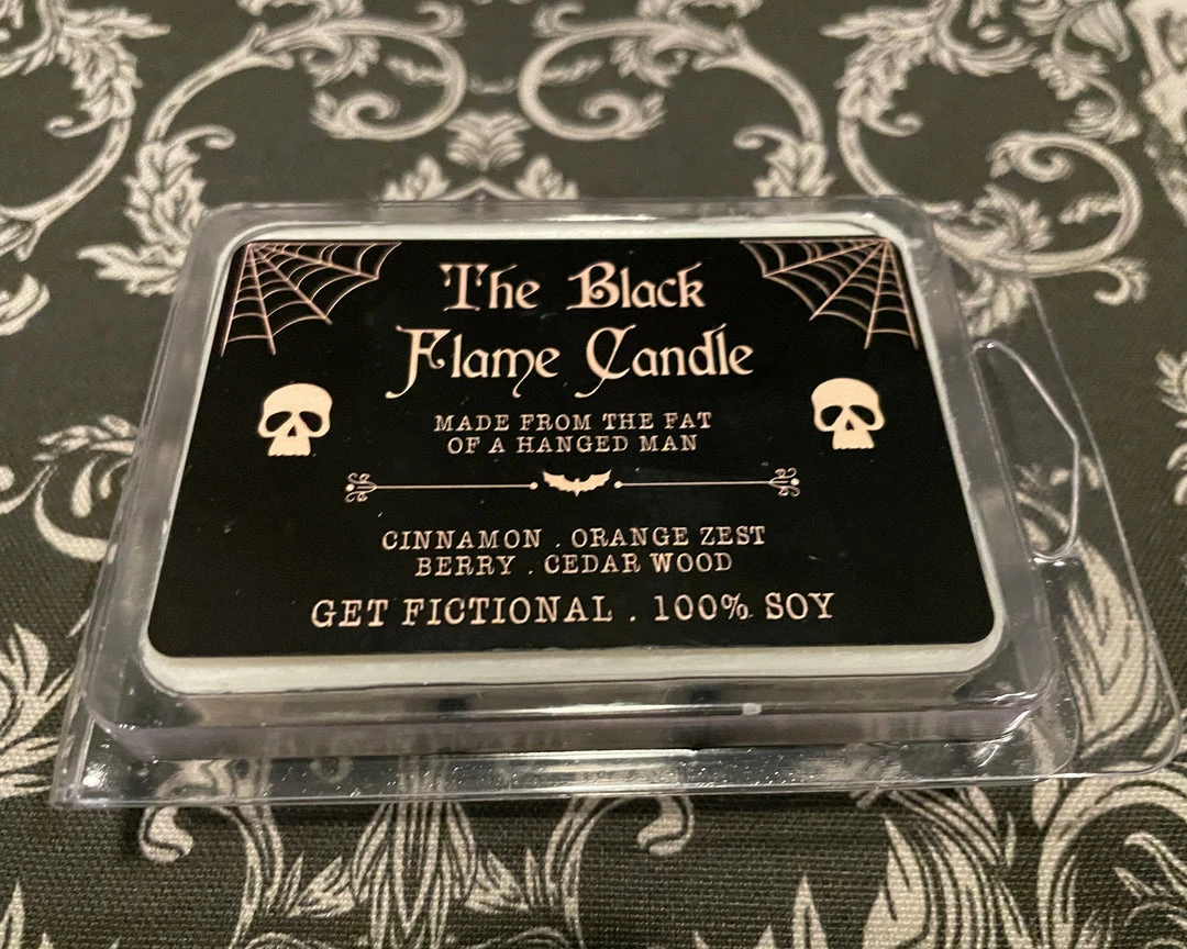 The Black Flame Candle smells of cinnamon, orange zest, berries, plum, and cedar wood.