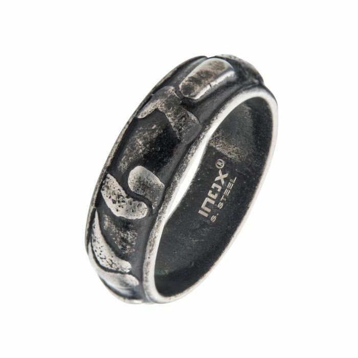 Men’s 7.5mm Matte Gun Metal Plated 3D Canyon Pattern Ring
