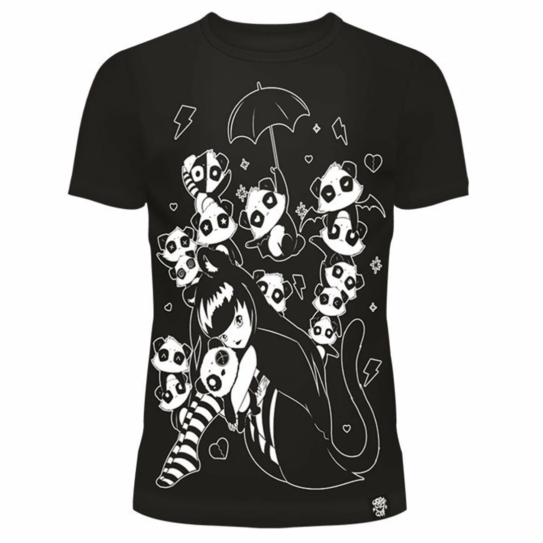 Black and white tee featuring Miss Panda surrounded by killer pandas. Killer Panda logo on back.