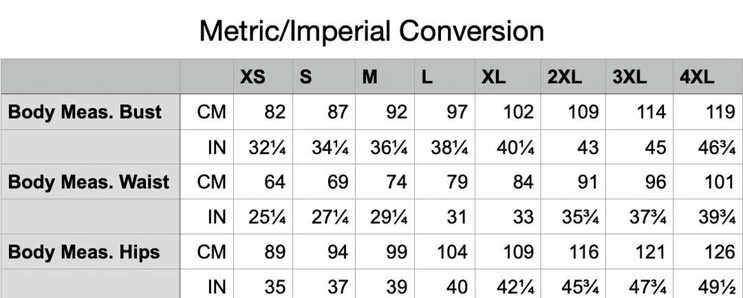 | Size | X-Small, Small, Medium, Large, X-Large, 2X-Large, 3X-Large |