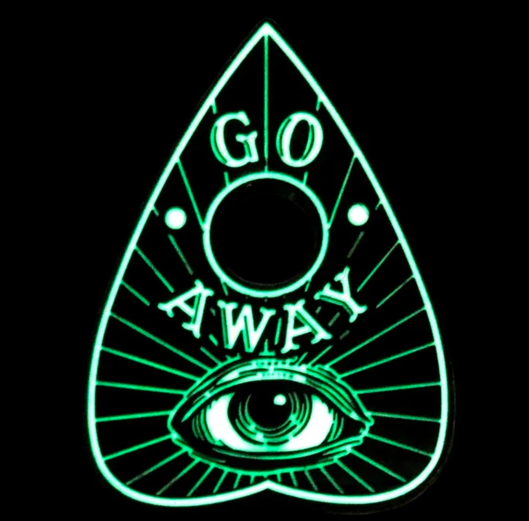 Kreepsville 666 skeleton planchette enamel pin badge, gloss finish with eerie glow in the dark effect.
