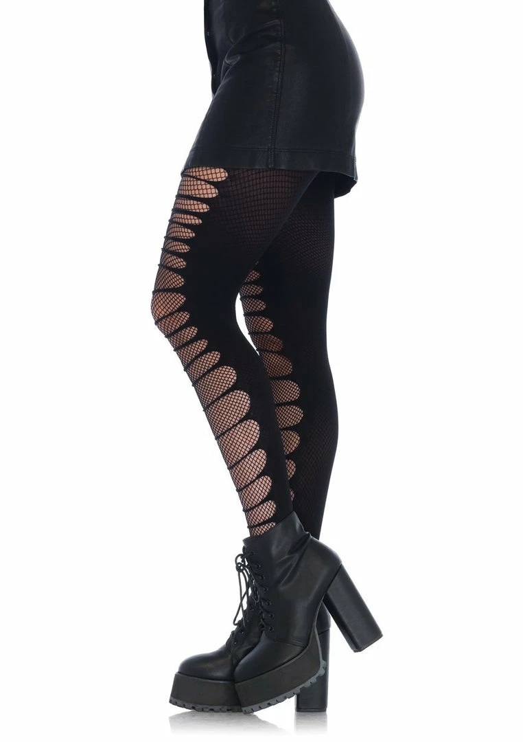 Double-Layer Shredded Spandex and Fishnet Tights by Leg Avenue – Black
