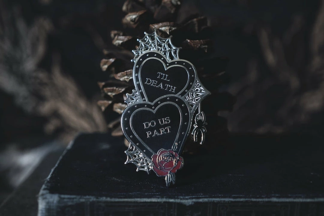 SKU: lively-ghosts-6702438580309 Categories: Other, Pins Tags: Enamel Pins, Heart, Roses, Spiderwebs