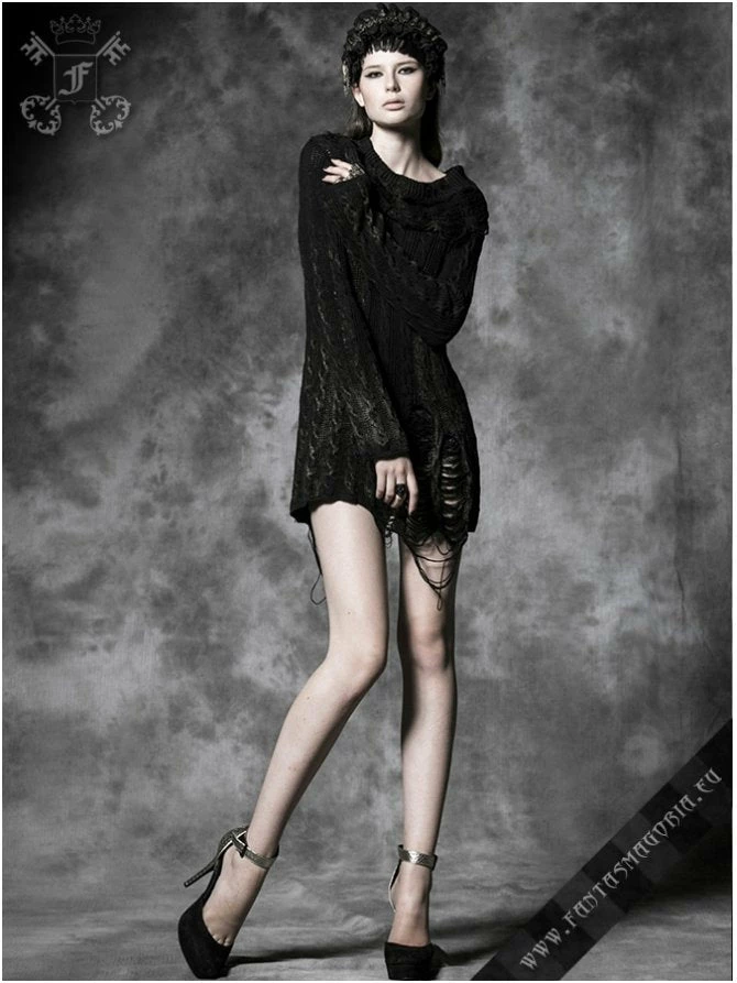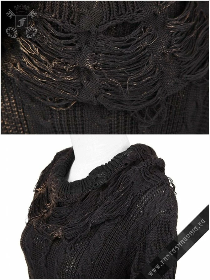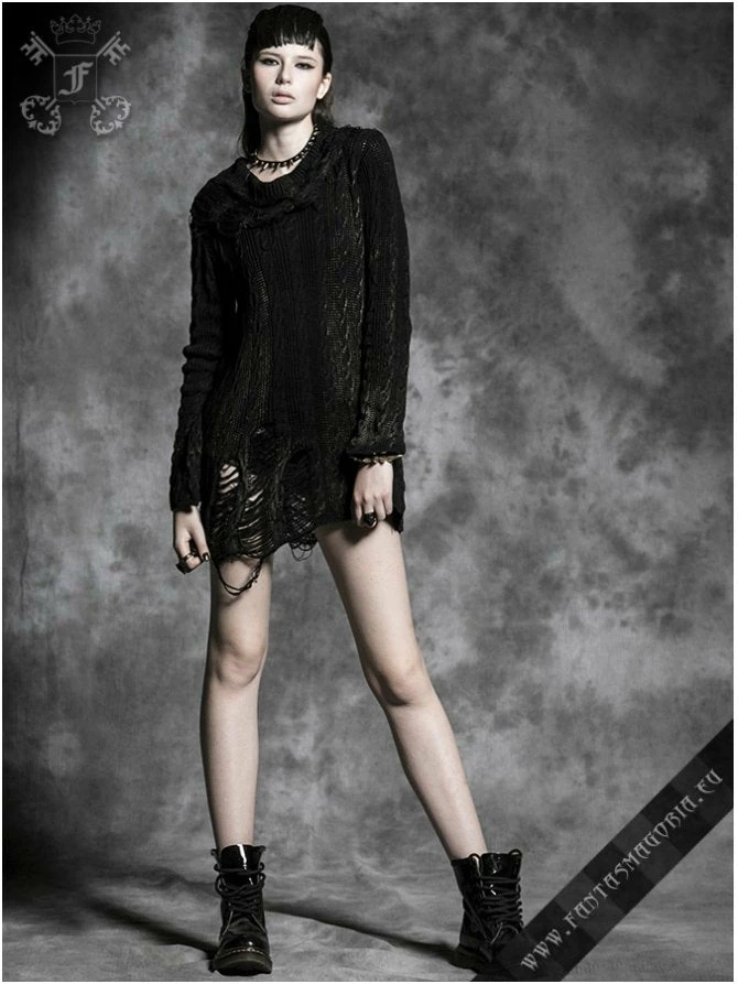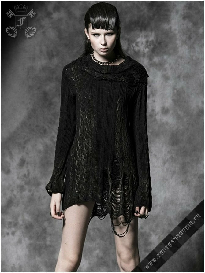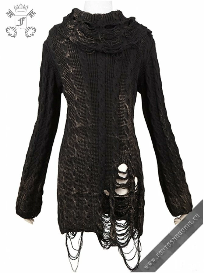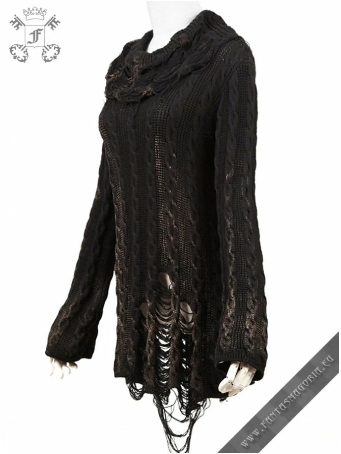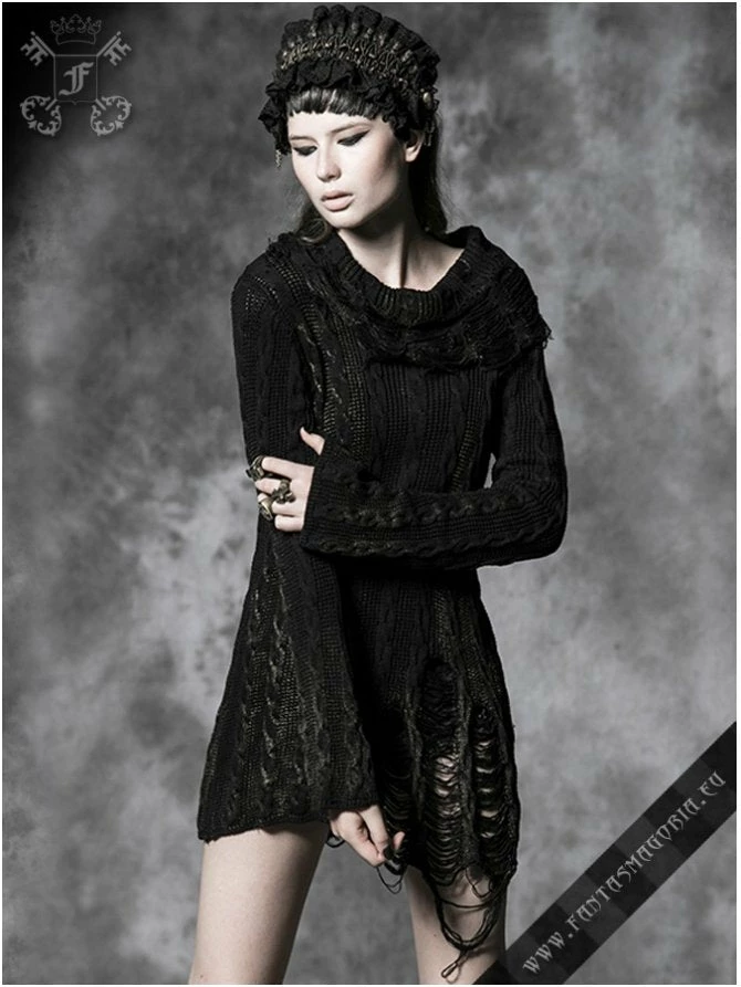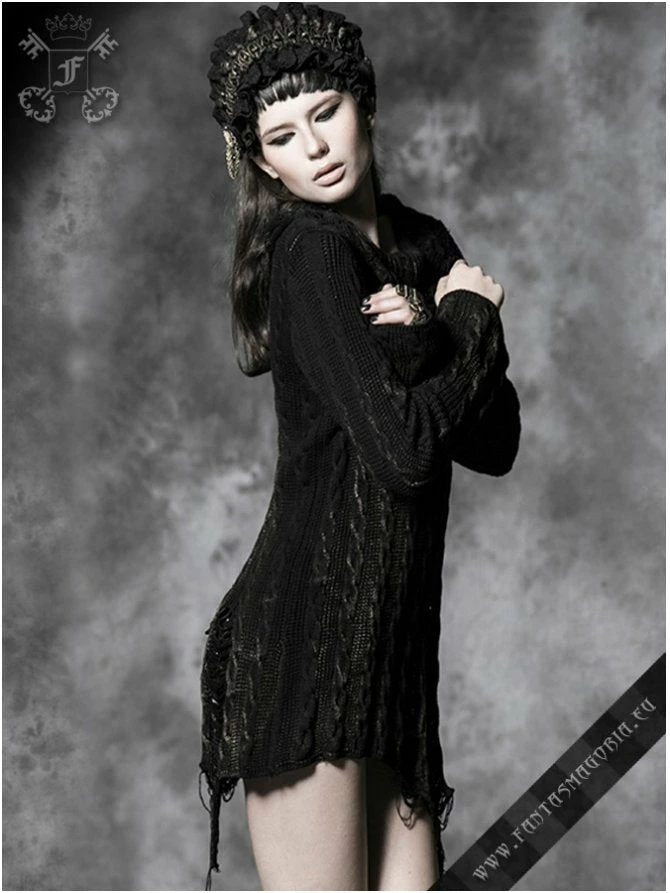 Steampunk Gothic Bohemian Decadence style distressed knitted pullover sweater dress for women.