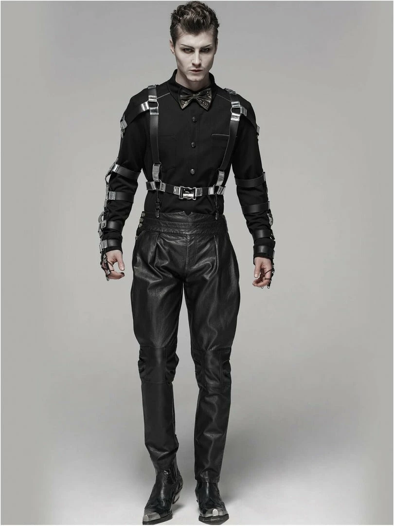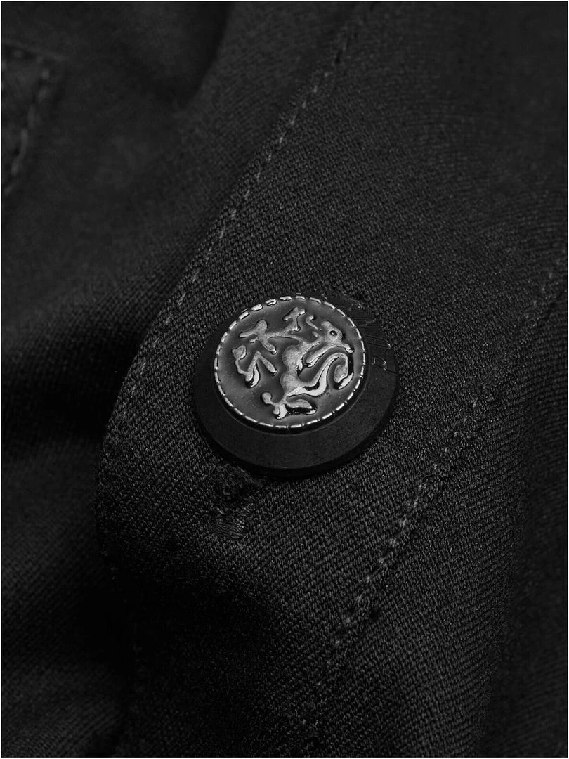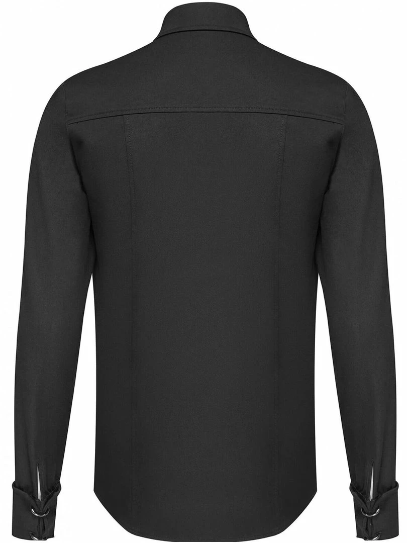 Woven fabric with small stretch. Front has intersected metal decoration. Special cuff ring design.
