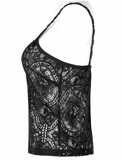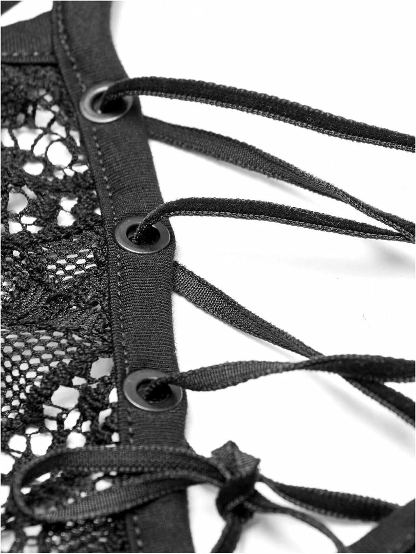 Black Opium top by Punk Rave. Short black lace top with straps and lacing on the front.