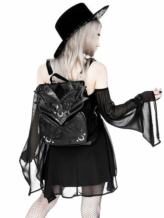 Gothic, black backpack with bat wings and dragon leather.