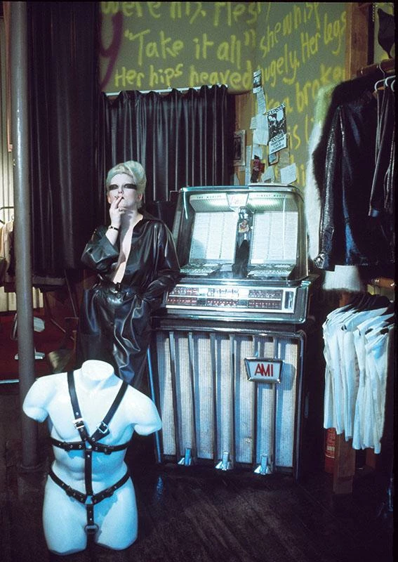 Softhand print on vintage white, sweatshop-free tees, featuring Sheila Rock’s portrait of style icon Jordan Mooney, at work as the face of Malcolm McLaren and Vivienne Westwood’s SEX, and Seditionaries, the shops at the epicenter of British punk and punk fashion.