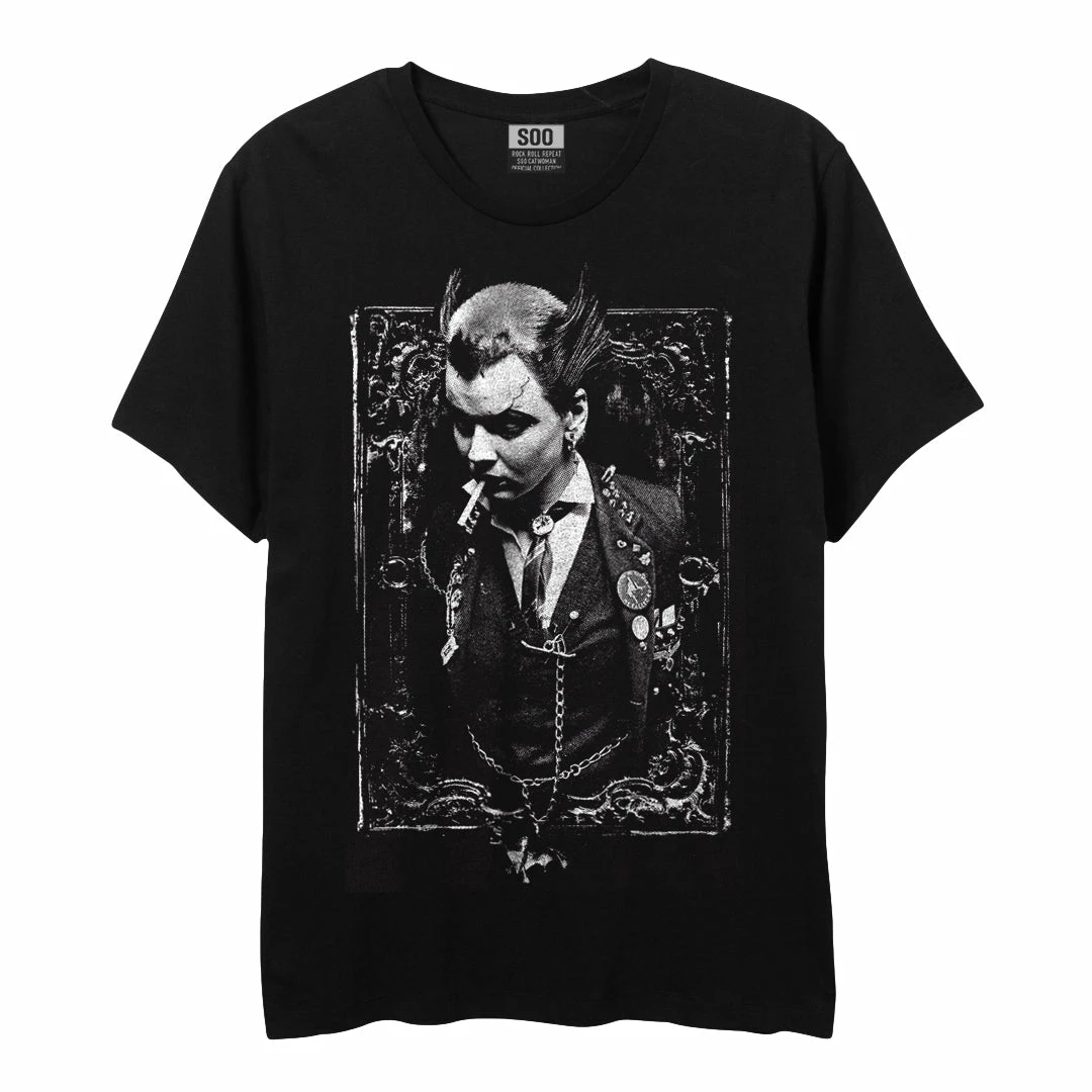 Softhand print on black, sweatshop-free tees, featuring Peter Marlow’s 1976 photo of the iconic Soo Catwoman at The Roxy Club.