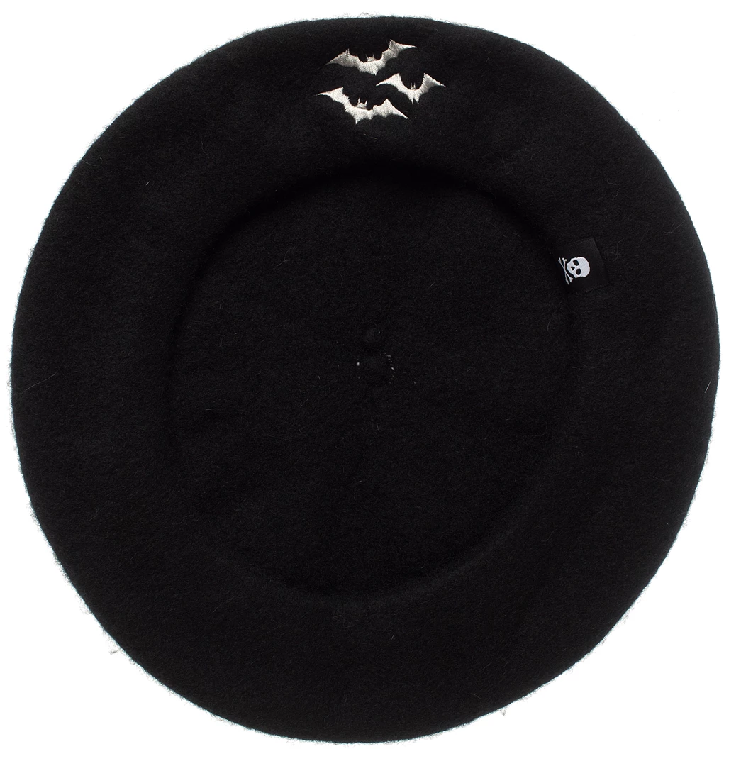 We’re a little bit batty over here, so we’ve added a cute cave-dwelling twist to our classic beret! Our Bats Beret is made from black wool and features a trio of bats embroidered front & center in white, with a wee Sourpuss logo label. Grab your own and fly off in style!