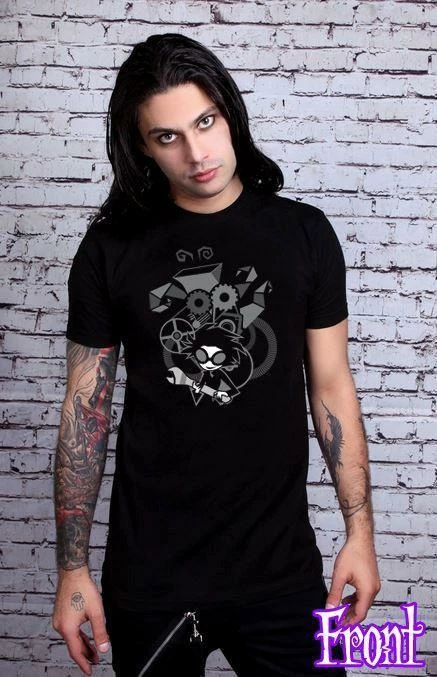 This little Rivethead is so adorable as he tinkers with his big, spooky gears. Make people go, “Aww,” as they pass by and check out the cool design that you are wearing! All Vampire Freaks designs feature the VF logo on the back.